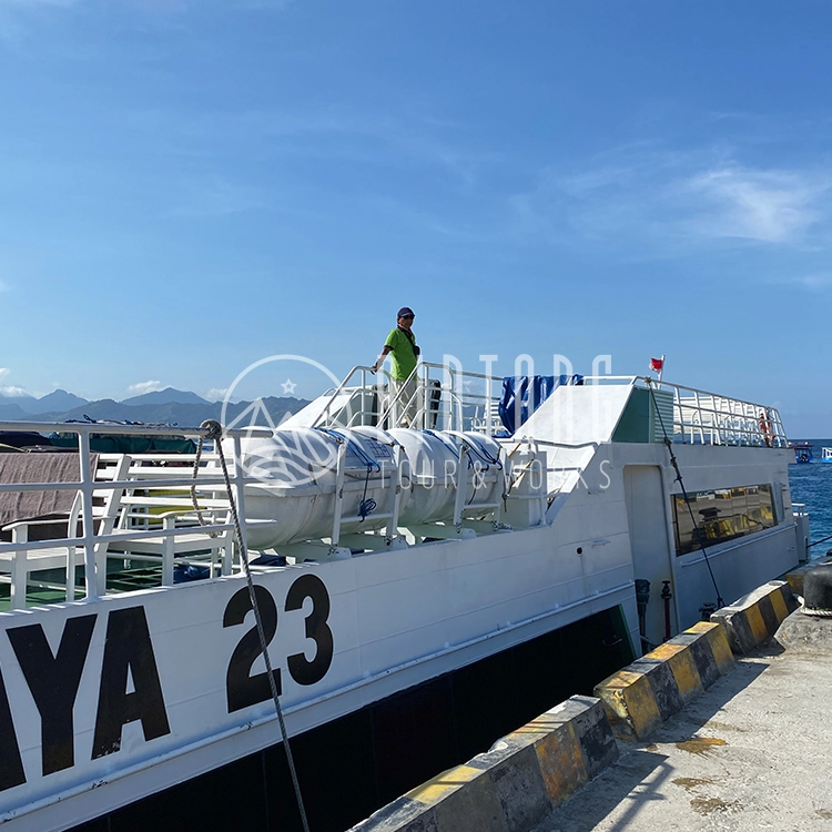 발리와 롬복을 연결하는 가장 빠르고 쾌적한 이동 서비스로 선사 내부에는 시원한 에어컨 시설이 완비되어 있고, 태양과 바닷바람을 즐길 수 있는 2층 데크로 이루어져 있어 이동하는 중에도 푸른 바다와 시원한 바람을 즐기기 좋습니다.