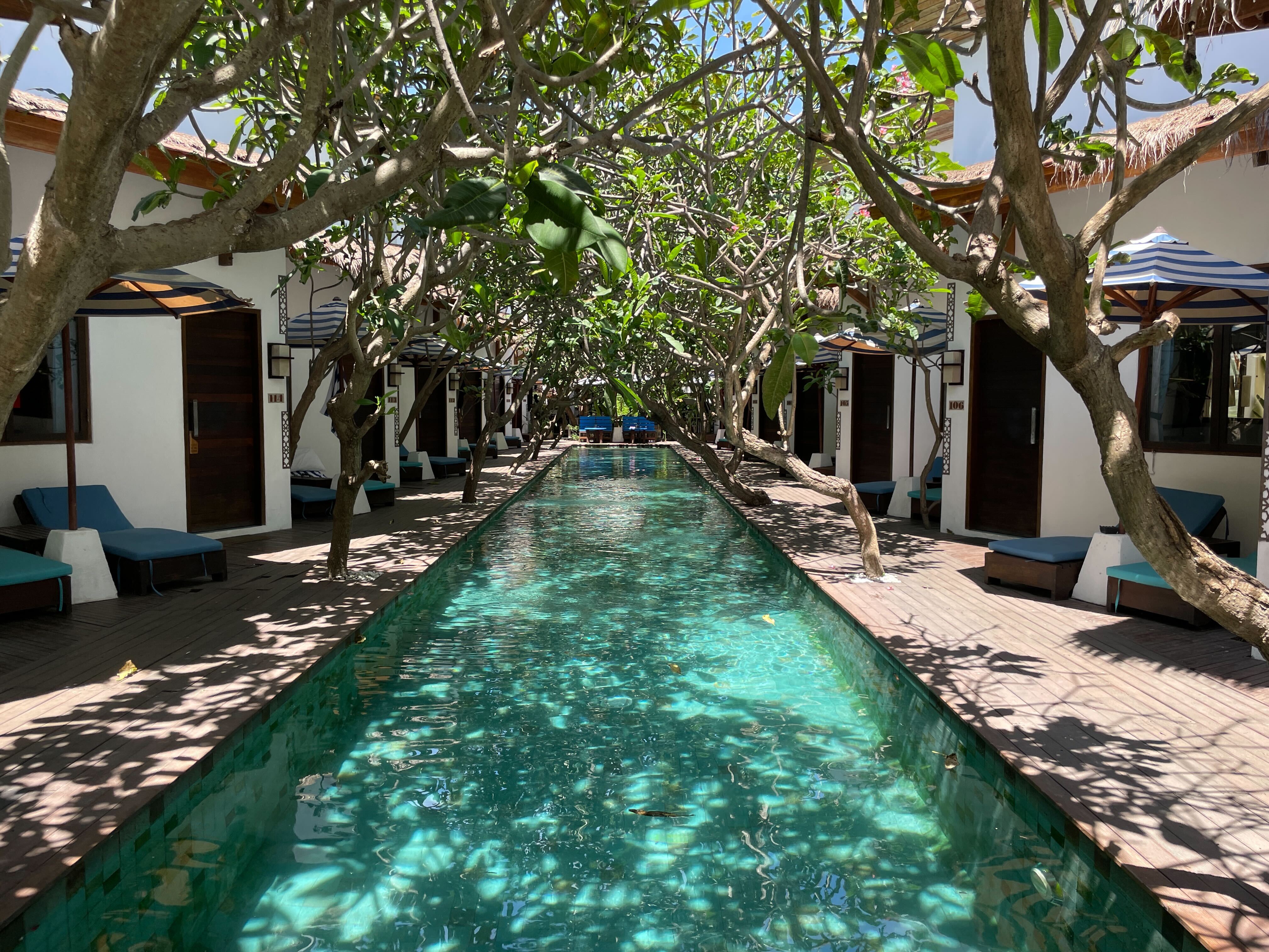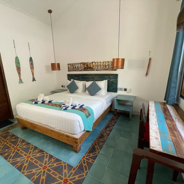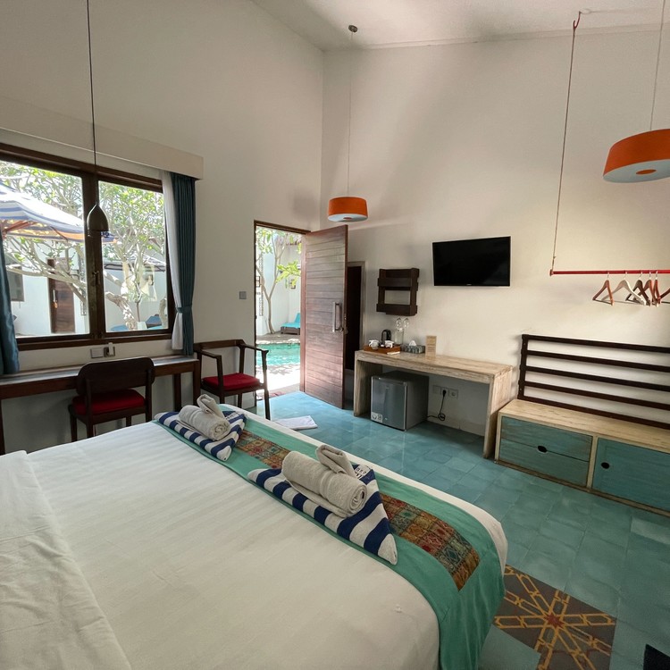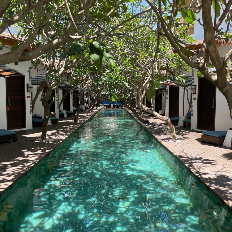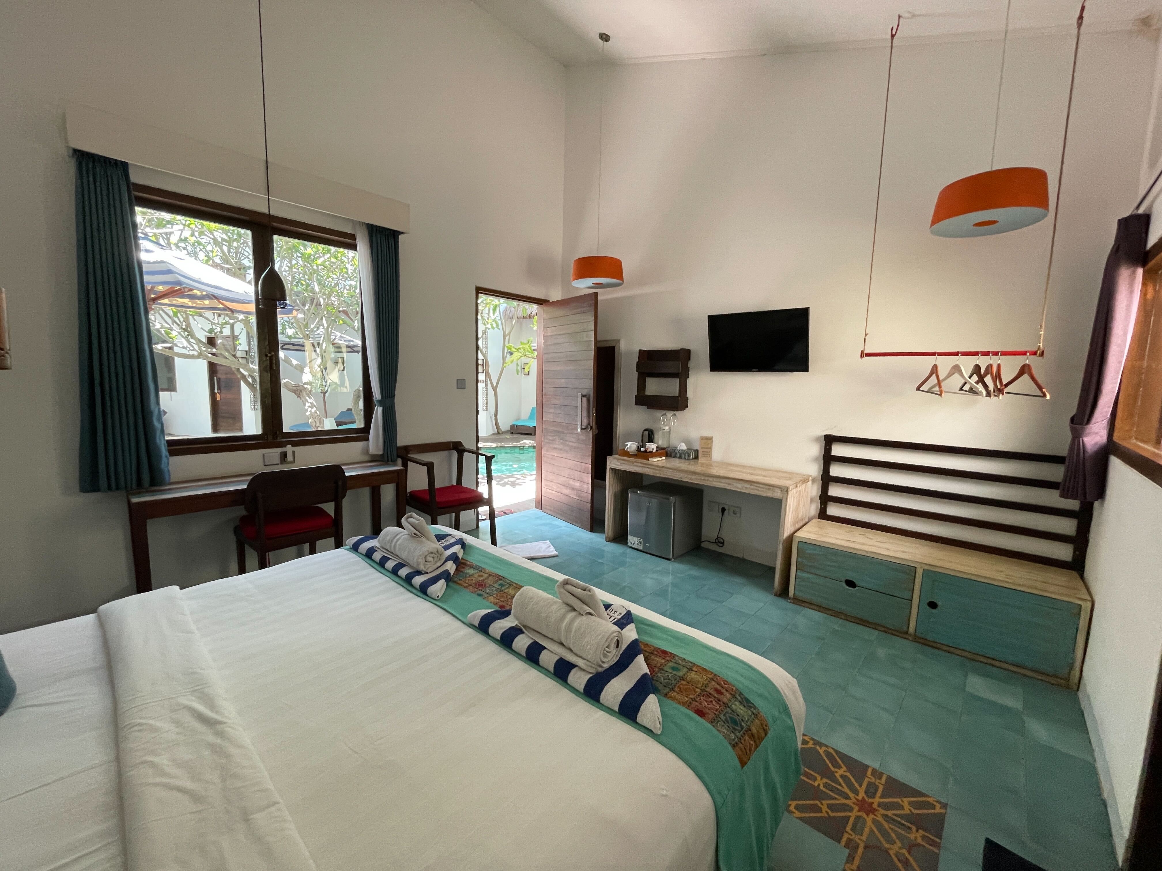 길리 동쪽 해변과 가까이에 위치한 숙소로 선라이즈 요가와 함께 하기 좋은 곳입니다.