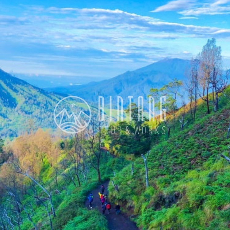 서서히 날이 밝으며 어두웠던 사방이 환해지기 시작하면, 안개에 가려 보이지 않았던 이젠 산의 절경을 감상할 수 있습니다. 끝없이 펼쳐진 파란 하늘과 시원하고 상쾌한 공기, 마음을 편하게 만들어주는 나무들까지! 하산하며 이젠 근처의 작은 화산을 구경할 수 있는 것도 포인트랍니다.