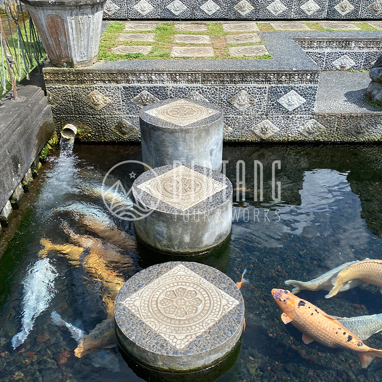 Tirta Gangga means holy water of the Ganges River. Hindus believe that bathing in its waters washes away sins and karma. The photo spot here is above a pond of schooling carp. You can buy carp rice separately at the entrance to the Tirta Gangga.