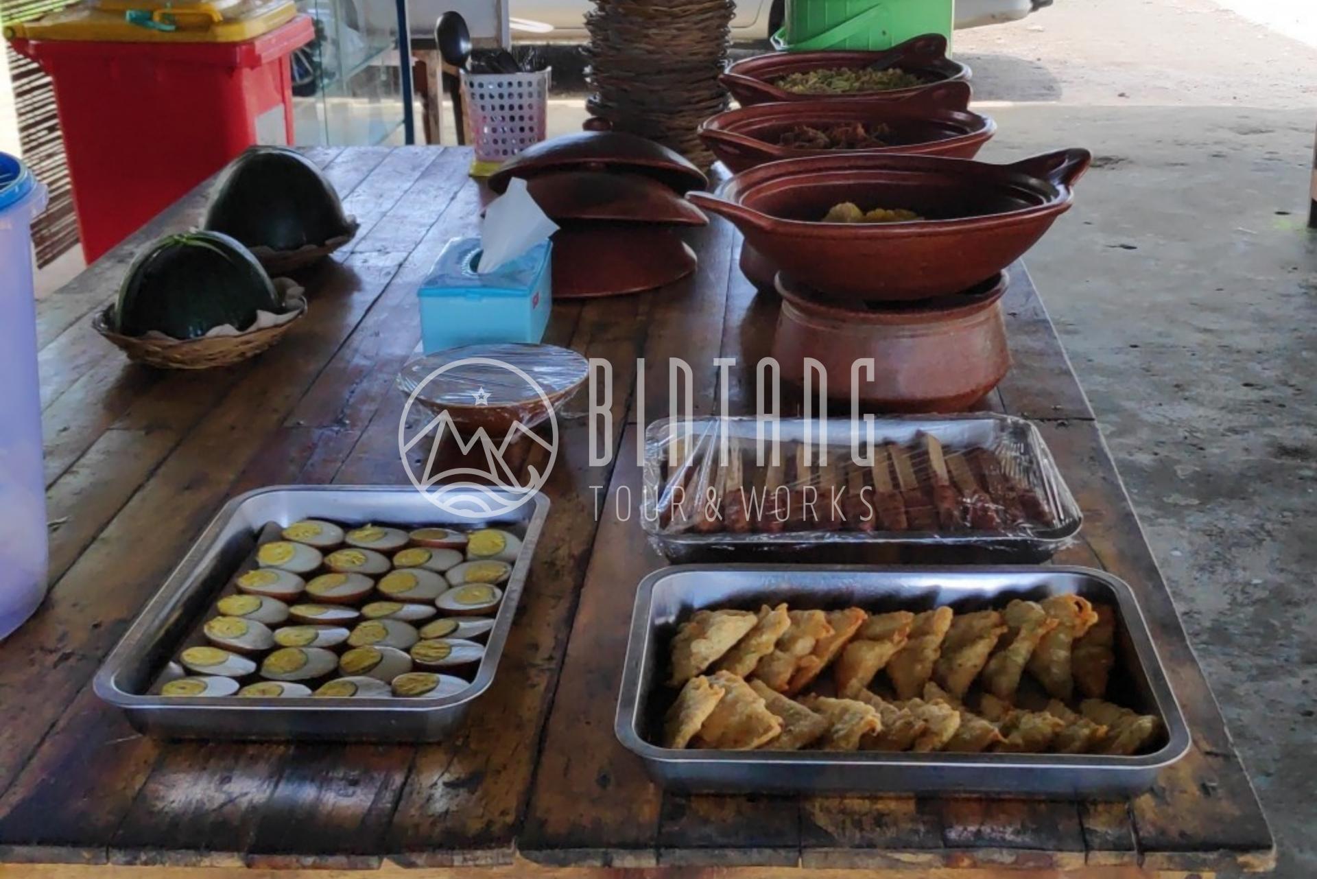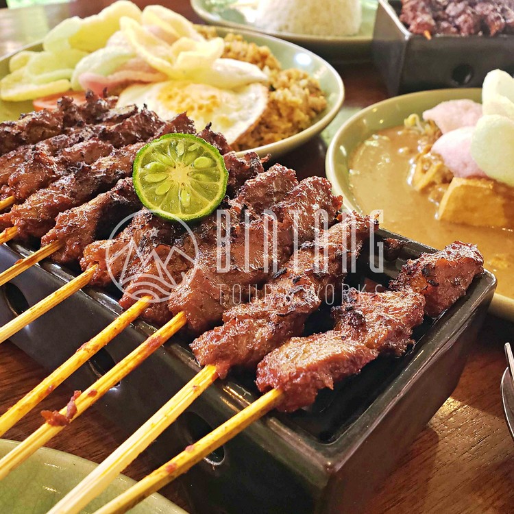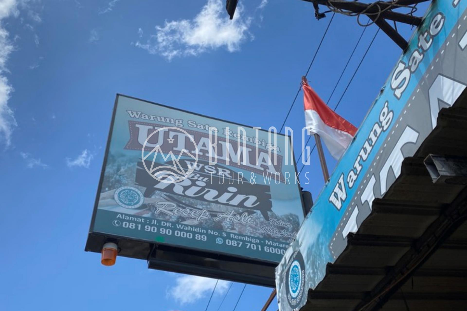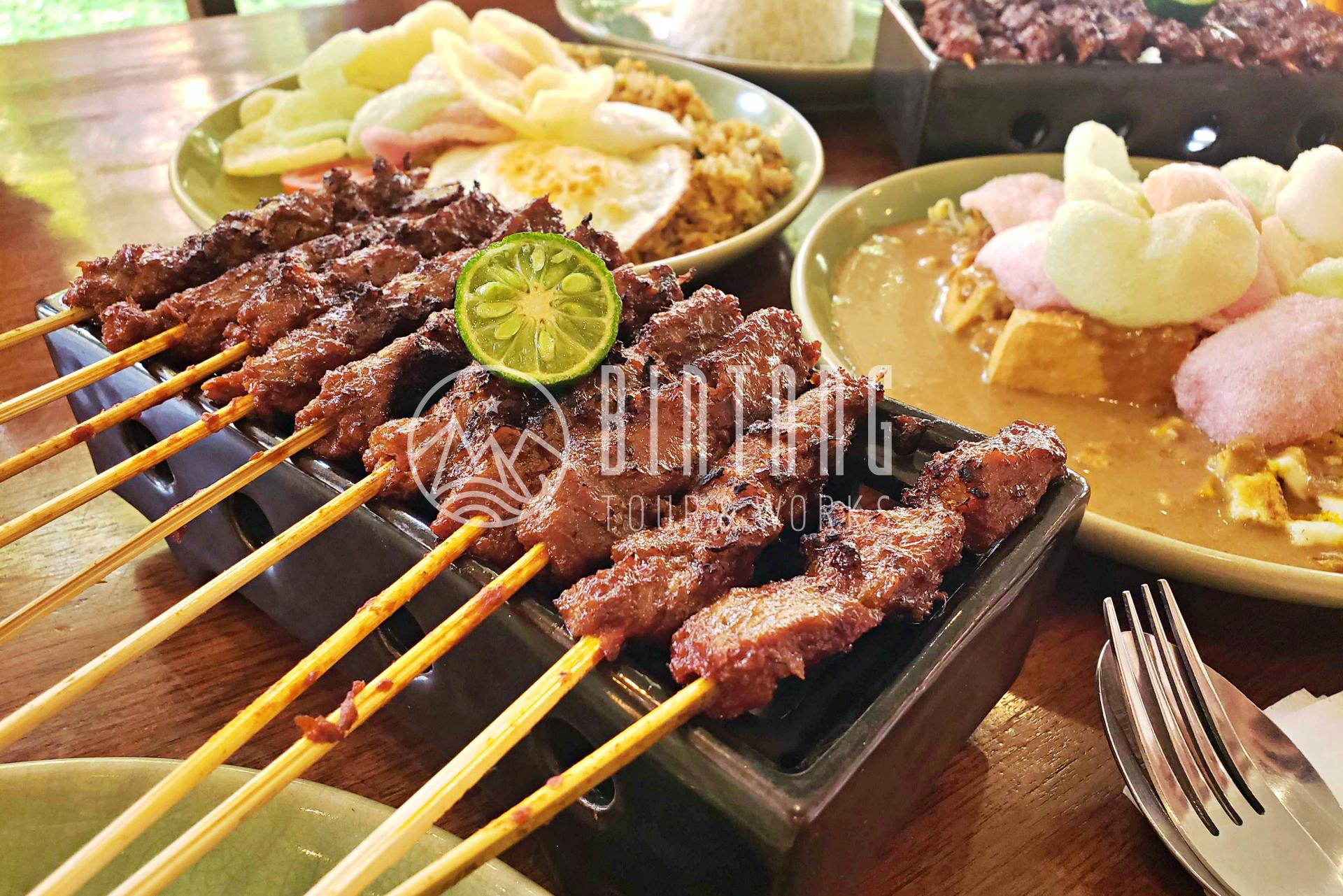 투어가 끝난 후 다들 배가 고프겠죠? 롬복의 인기 특산품 중 하나인 사테 름비가로 이동합니다. 사테 렘비가 롬복의 유명한 전통 요리입니다. 소고기에 붉은 고추, 야자 설탕, 새우 페이스트, 현지 향신료를 섞어 만든 소스를 발라 불 맛을 화끈하게 입혀 구워낸 꼬치에요. 매운 음식을 좋아하고, 많이 찾는 롬복 만의 매콤한 맛을 제대로 느낄 수 있는 사테! 심지어 사테 름비가는 롬복에서도 손에 꼽히게 유명한 맛집이랍니다. 매운 사테 말고도 달달한 땅콩 소스와 곁들여 먹는 사테도 준비되어 있으니, 취향에 맞게 선택 후 식사하시면 됩니다.