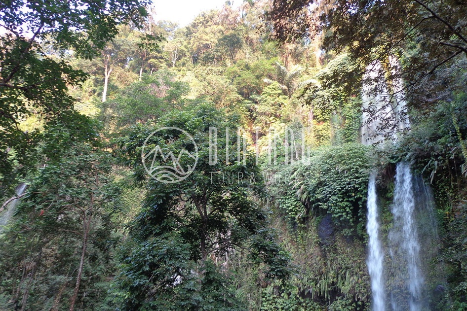 센당 길레 폭포는 해발 약 600m의 린자니 산 기슭에 위치해 있습니다. 이 폭포에 도착하려면 서부 누사 텡가라( Nusa Tenggara) 지방의 수도인 마타람(Mataram) 시에서 약 2시간을 이동해야 한답니다. 폭포에 접근하려면 울창한 숲을 통과하고, 다리와 계단을 넘는 짧은 트레킹을 거쳐야 합니다. 센당 길레폭포는 높이가 약 31m이고 2단으로 구성되어 있는, 절벽에서 흘러나오는 맑은 물이 차분한 분위기를 자아내는 곳입니다.