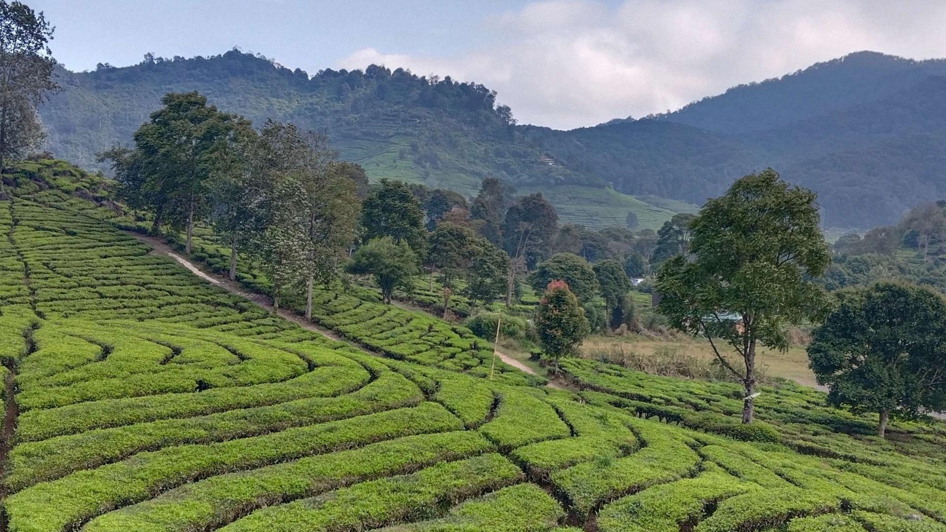 란짜발리 차밭 (Rancabali Tea Plantation): 끝없이 펼쳐진 푸른 차밭 전경